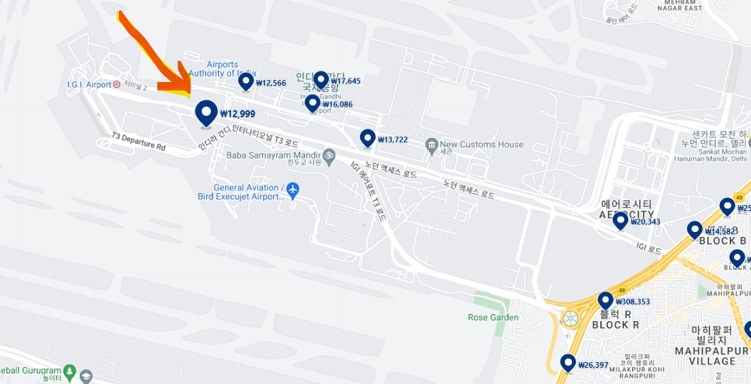 실제 호텔 위치는 Mahipalpur 지역이었다.