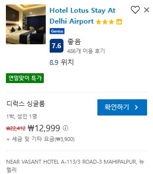 booking.com에서 공항 업무지역 안에 있는 "Hotel Lotus Stay at Delhi Airport"를 찾았다.